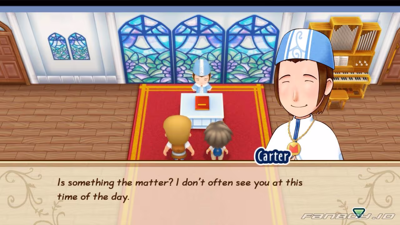 Carter is happy to see you. He explains that while he was in the confession room, in the middle of some “spiritual contemplation” (aka a nice little nap), he heard a whispering voice. The mysterious voice told him that luck was coming his way. Even though it was just a vision, Carter wonders what it might mean.