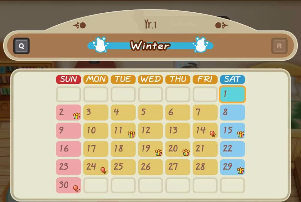 In Story of Seasons: Friends of Mineral Town, the year is divided into four seasons, each consisting of 30 days. Below is a full seasonal breakdown of all festivals, birthdays, and key events.