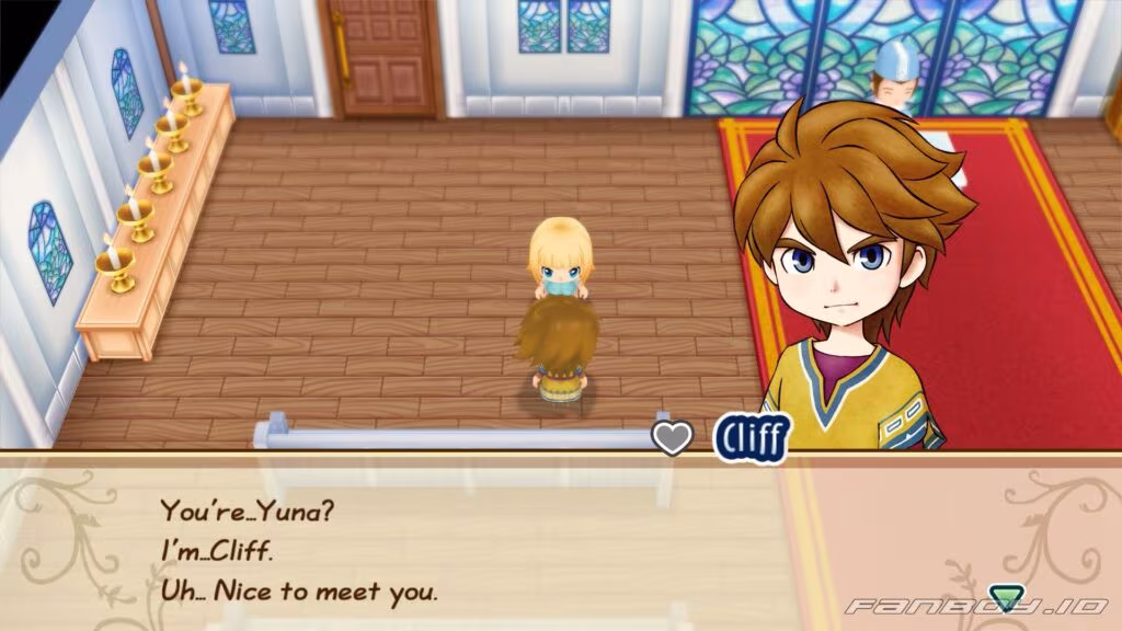 When you enter the church, Carter greets you and points out a young man sitting quietly on a pew—his name is Cliff. Carter asks if you’d be willing to go over and talk to him. He explains that Cliff is new in town and struggles to talk to others. He’s very shy and doesn’t do well with strangers.