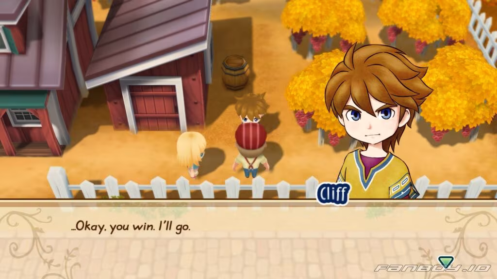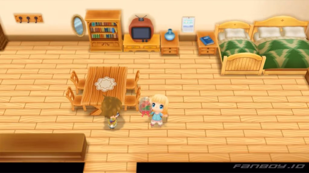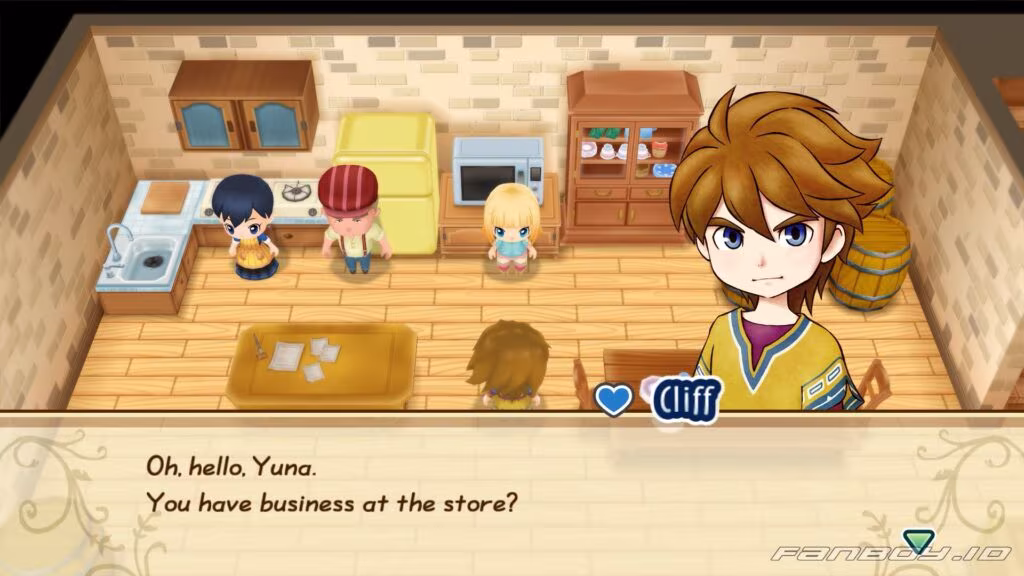 Cliff is watching Popuri, Yu, and Mei play together. He’s surprised by how close they are, even though they’re not family. You push him toward them to join in. Eventually, everyone plays games and has a lot of fun.