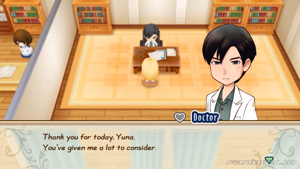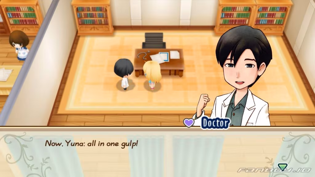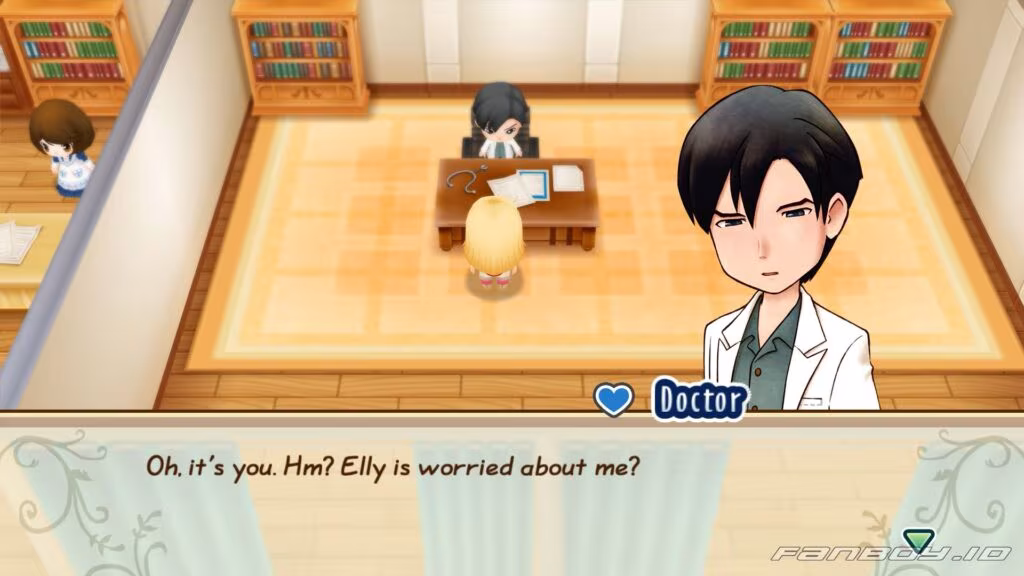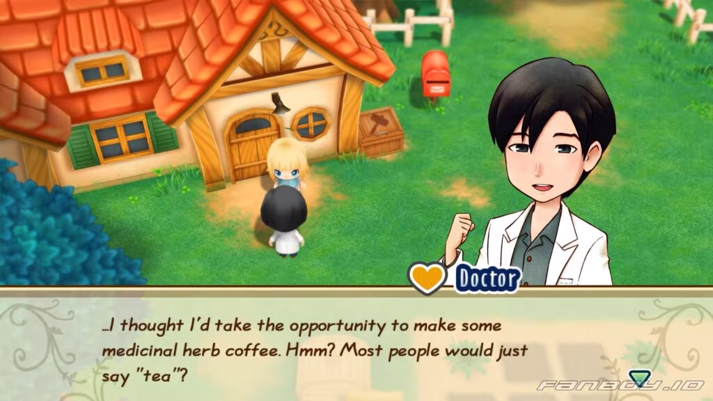 When you pop into the clinic, the Doctor introduces himself and tells you to come see him if you ever feel sick. He says people here are usually pretty healthy thanks to nature, so he doesn’t get many serious cases.