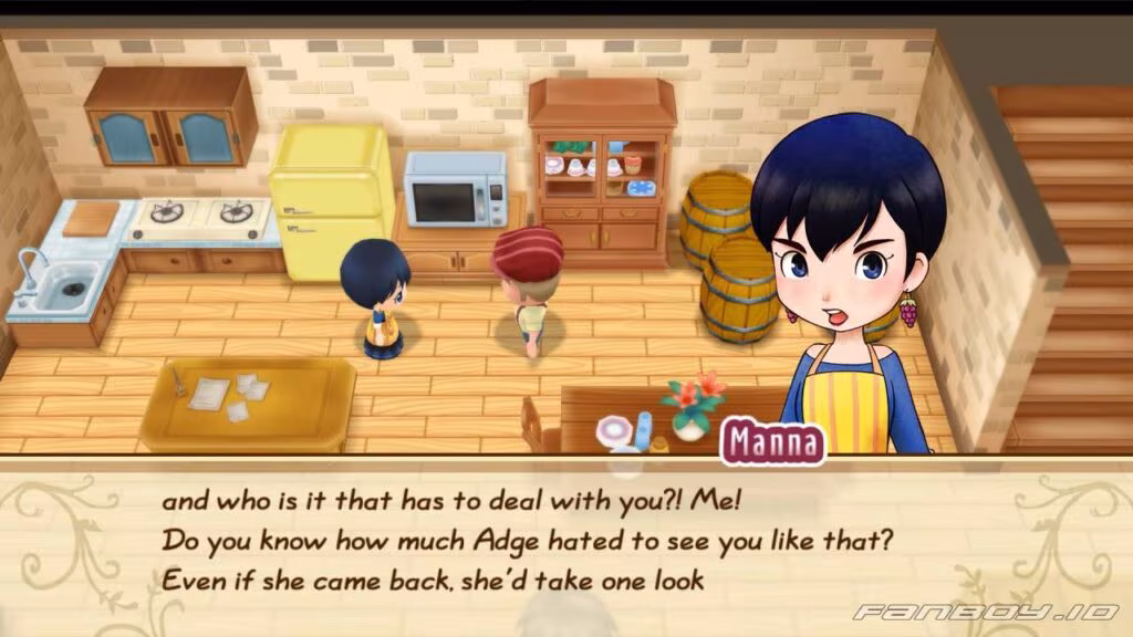 As you enter the winery, you witness a heated argument between Manna and Duke. Manna accuses Duke of secretly drinking juice behind her back. Duke denies it, but Manna says she found empty bottles under the bed—and they weren’t from Adge Winery.