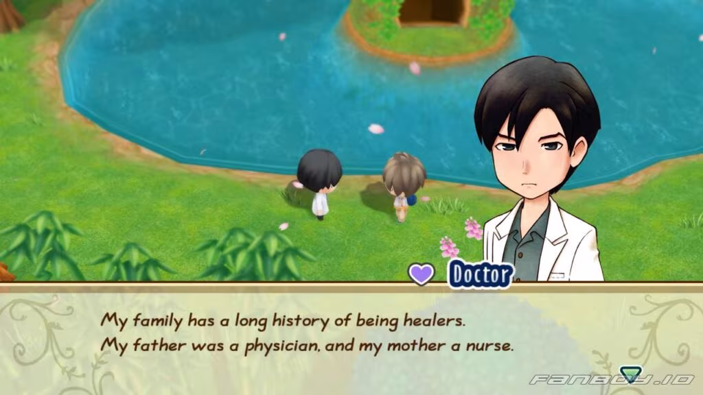 You find Doctor deep in thought by the lake when he notices you approaching. He asks if you’re feeling well, but you assure him that you’re fine. The Doctor then begins to talk about his parents.