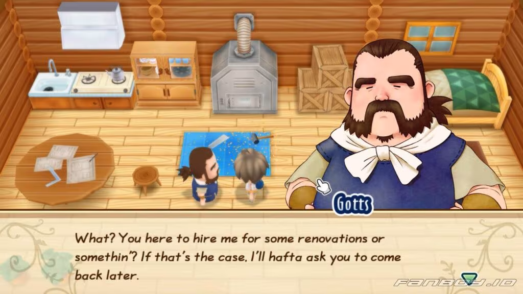 When you enter the workshop, you’ll see Gotts looking a bit frustrated. He explains that he’s lost his motivation and feels stuck in a rut he can’t seem to escape. Gotts asks you to give him some time as he tries to recover from this slump.