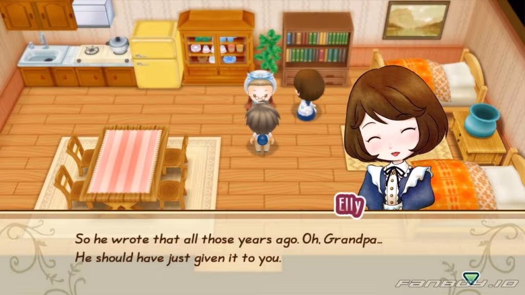 Ellen, Elly, and Yu warmly welcome you when you arrive. Elly and Ellen ask how your farm is doing and praise how admirable your hard work is. Elly says she could learn a lot from you.