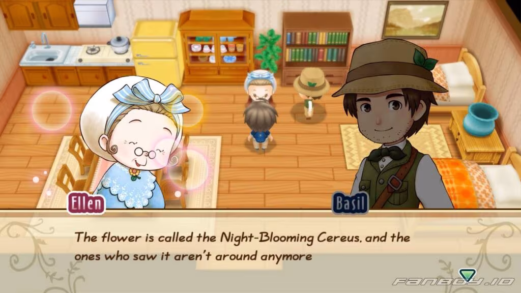 Ellen really wants to see this flower before she passes away. Basil is intrigued by Ellen’s story. If you happen to find this flower, Basil asks you to bring it to Ellen. He returns to his home to research this white flower.