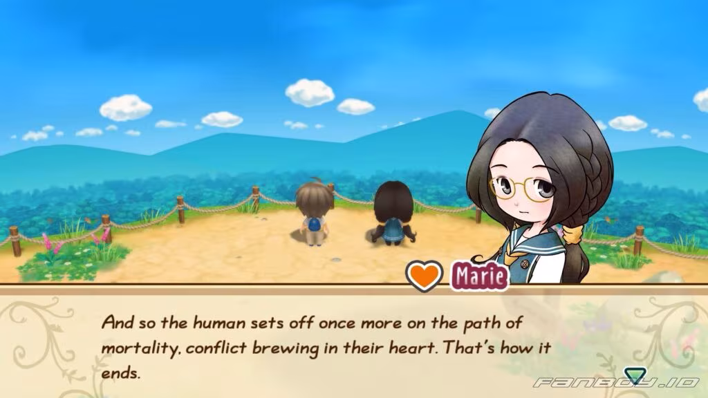 At Mother’s Hill Summit, Marie looks upset. She explains she found an old book while organizing the library. She wanted to read it somewhere nice, so she brought it here. The story touched her deeply, and she cries. She thanks you and asks if you’ve ever read a book that made you cry.