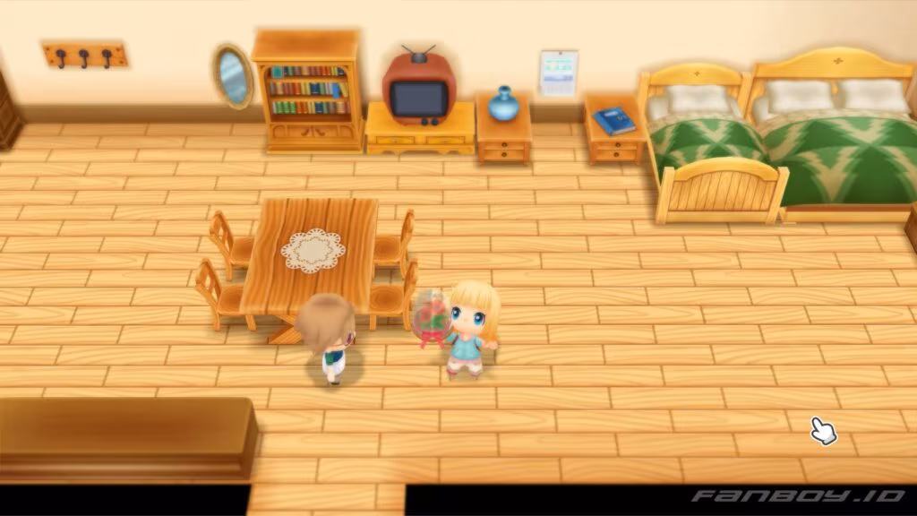 Popuri and Lillia return, noticing how close you and Rick are. Rick scolds them for leaving, but Popuri jokes you two managed fine.