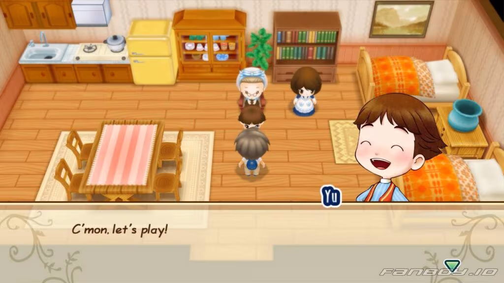 After playing for a while, you start to feel tired. Yu wants to keep playing. Elly reminds him that even though you’re being kind, you still have lots of farm work to do. Yu understands and thanks you for spending time playing with him.
